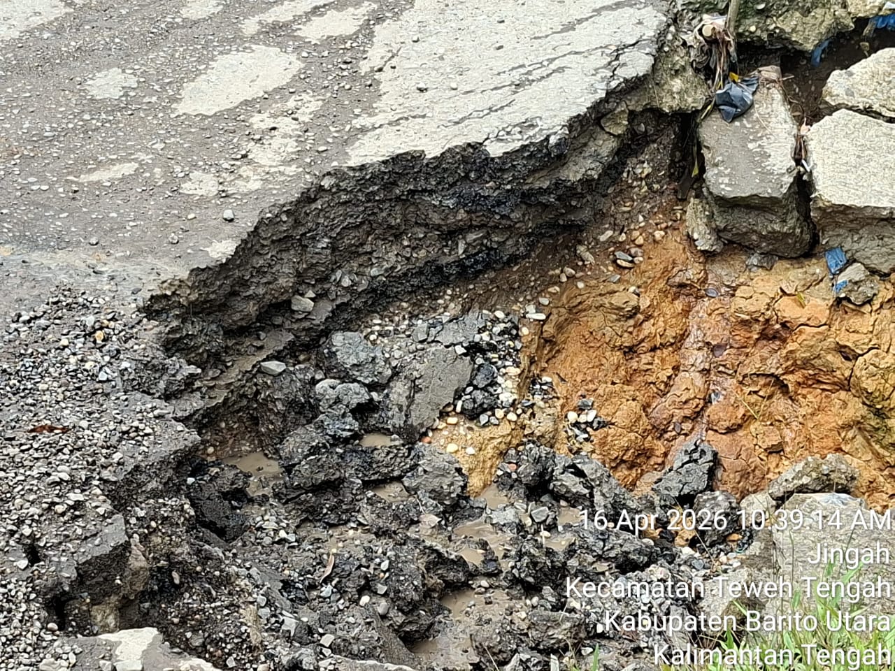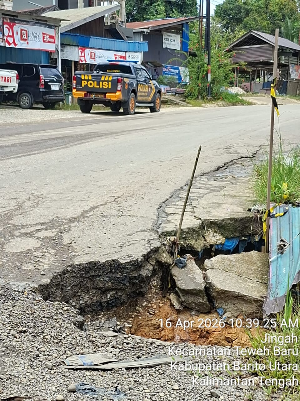 Jalan nasional tersebut diketahui merupakan jalur vital yang menghubungkan antarwilayah di Kabupaten Barito Utara, sehingga kerusakan yang terjadi berpotensi mengganggu aktivitas transportasi dan distribusi logistik masyarakat.