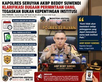 Lebih lanjut Kapolres Seruyan AKBP Beddy Suwendi menegaskan, segala bentuk permintaan uang dengan mengatasnamakan institusi Polri tidak dapat dibenarkan dalam kondisi apa pun. Tindakan tersebut dinilai sebagai pelanggaran disiplin dan kode etik yang akan diproses sesuai ketentuan yang berlaku.