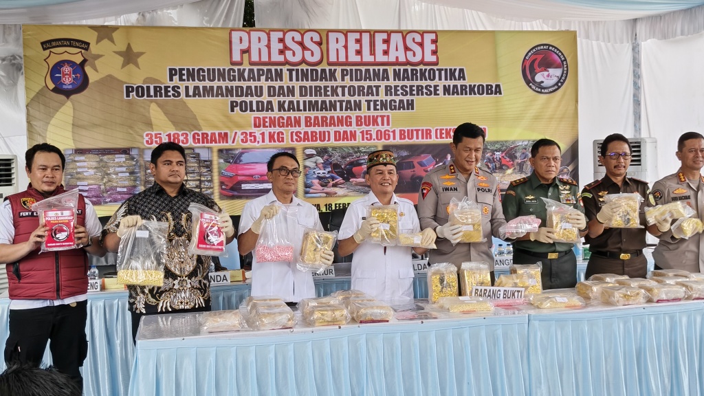 Kapolda Kalimantan Tengah, Irjen Iwan Kurniawan secara langsung menyampaikan hal tersebut dalam konferensi pers yang digelar di Mapolda Kalteng. Kegiatan itu turut dihadiri Gubernur Kalimantan Tengah Agustiar Sabran, Pangdam XII/Tanjungpura, Kajati Kalteng, Kabinda, serta yang mewakili Kepala BNN Provinsi Kalimantan Tengah, Rabu (18/02/2026).