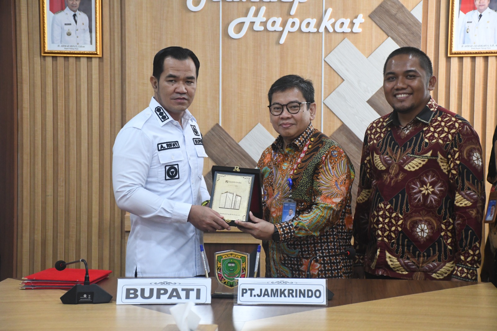Pulang pisau-Monitorkalteng.co.id)Bupati H.Ahmad Rifa’i melaksanakan penandatanganan Nota Kesepahaman (MoU) dengan PT Jaminan Kredit Indonesia (Jamkrindo) terkait jasa penjaminan suretyship.Kegiatan tersebut digelar di Ruang Rapat Bupati kabupaten pulang pisau kalimantan tengah,15/04/2026)
