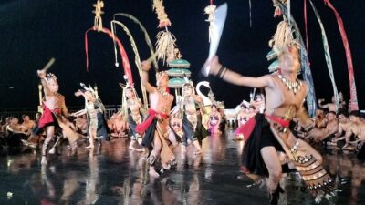 Tarian Dayak Kalteng Berpadu dengan Kecak di Panggung Budaya Pantai Melasti Bali