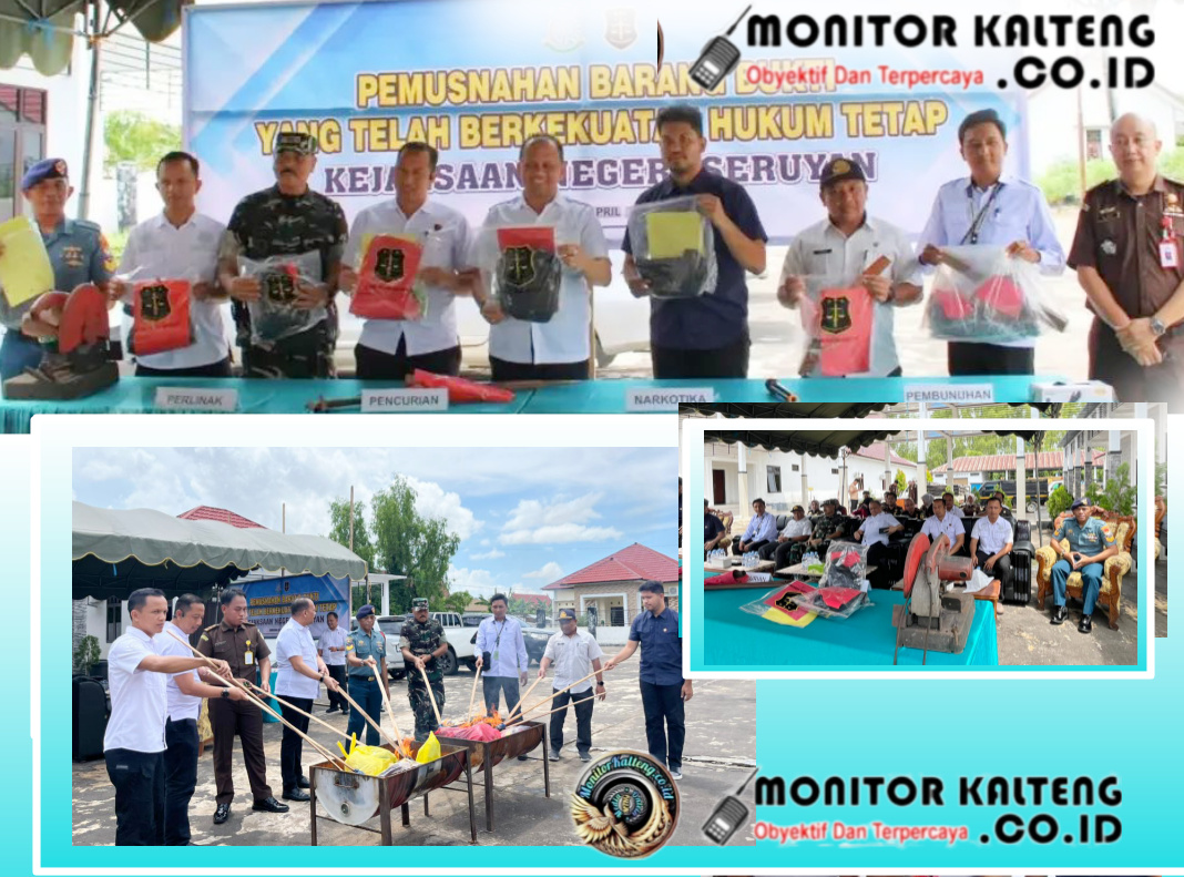 MONITOR KALTENG, KUALA PEMBUANG — Sinergi aparat penegak hukum di Kabupaten Seruyan kembali ditunjukkan secara konkret. Kepolisian Resor (Polres) Seruyan bersama Kejaksaan Negeri (Kejari) Seruyan memusnahkan berbagai barang bukti tindak pidana yang telah berkekuatan hukum tetap (inkracht van gewijsde), Rabu (29/4/2026).